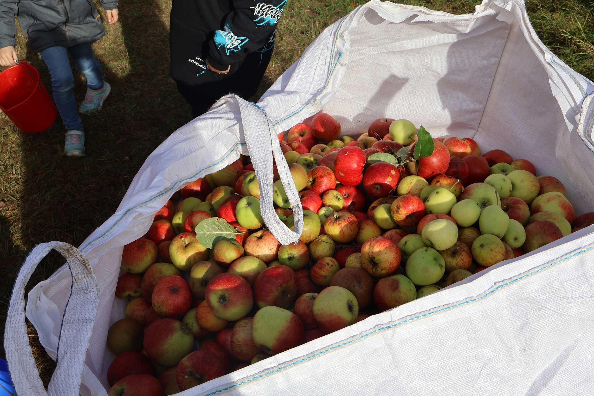 Ein Dank gilt außerdem dem Bauhof Liebenau für die vorherige Mahd der Fläche, die Bereitstellung der Big Packs sowie den Transport der Äpfel. Wir freuen uns über die Zusammenarbeit mit der Diemeltalschule und hoffen zukünftig auf weitere Aktionen dieser Art.