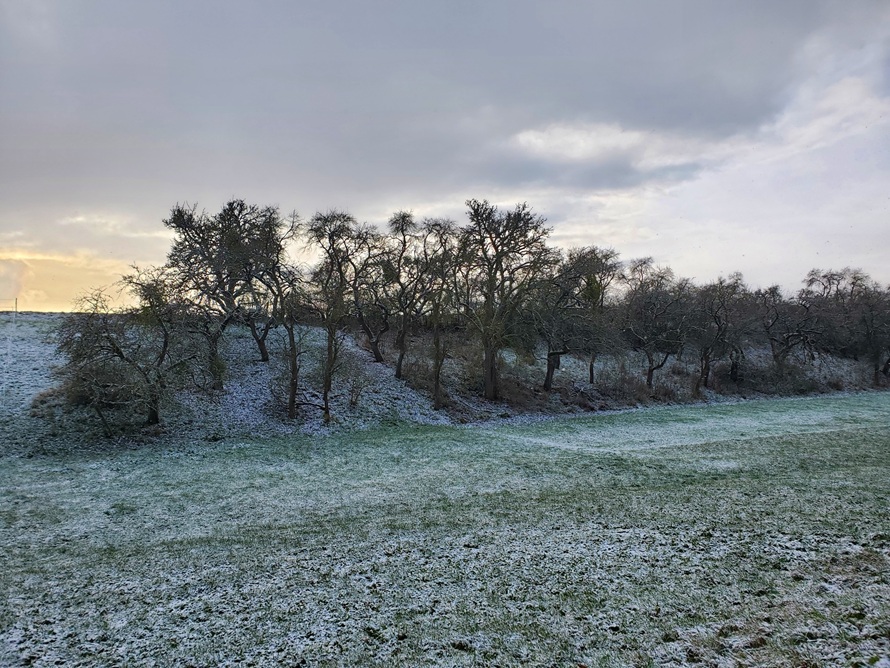 Das Projekt wurde im August 2025 bewilligt. Nun haben die ersten Schnittarbeiten begonnen und in diesem Winter soll auch eine Streuobstwiese in Heimarshausen entbuscht werden. Dabei handelt es sich um eine besonders alte Streuobstwiese mit über 80 Jahre alten Apfelbäumen und vielen Pflaumenbäumen, die nun wieder instandgesetzt werden. Längerfristig soll die am Hang gelegene Streuobstfläche mit Schafen beweidet werden, um einer erneuten Verbuschung vorzubeugen.