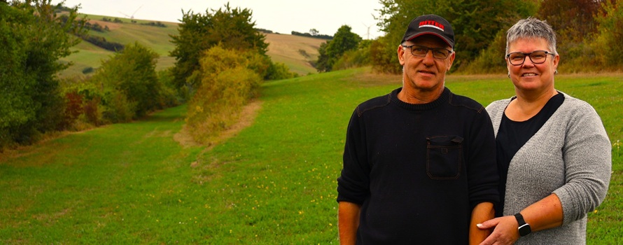 Herr Hofeditz möchte die traditionelle Bewirtschaftung seiner Familie fortführen. „Die Fläche wird schon ewig, seit über 30 Jahren, extensiv bewirtschaftet. Früher wurde sie mit Kühen abgeweidet. Der untere Hang war sogar noch Ackerbau. Jetzt mähe ich die Fläche einmal im Juni und lasse, je nach Wetter, im Herbst nochmal nachweiden oder nachmähen.“ Frau Hofeditz freut sich über die Vielfalt der Pflanzen, die sich inzwischen eingestellt hat. „Das ist einfach wunderschön, wenn man dasteht und toll welche Vielfalt entsteht, ohne dass man viel gemacht hat“. Sie begeistert sich inzwischen sehr für die Botanik und kennt viele Arten ihrer Fläche nun mit Namen. Ganz so wenig macht Ehepaar Hofeditz jedoch nicht auf der Fläche: Damit sich die Heckenstruktur nicht ausbreitet, mulcht Herr Hofeditz bei Bedarf die am Wiesenrand aufkommenden Gehölze.